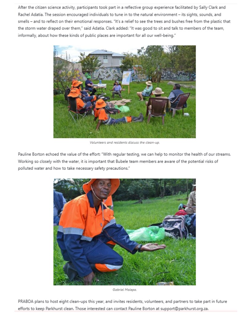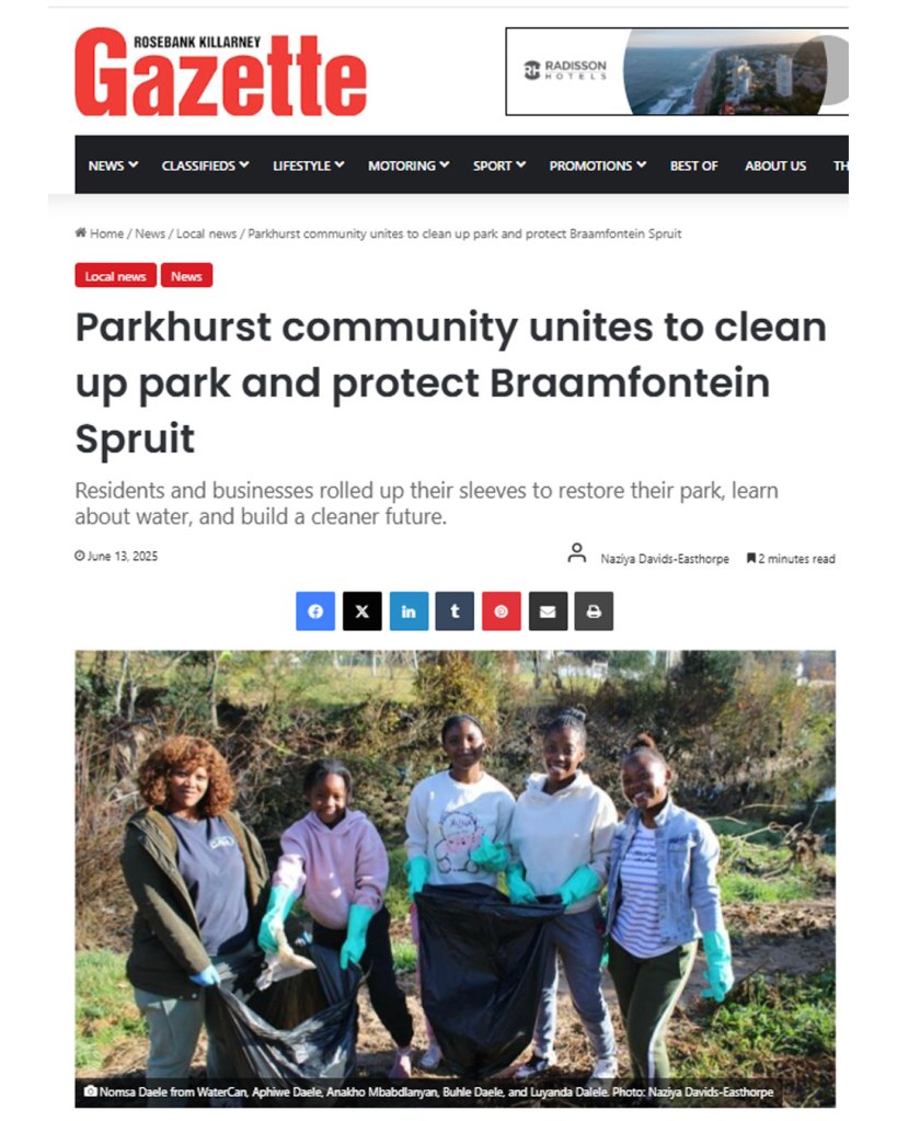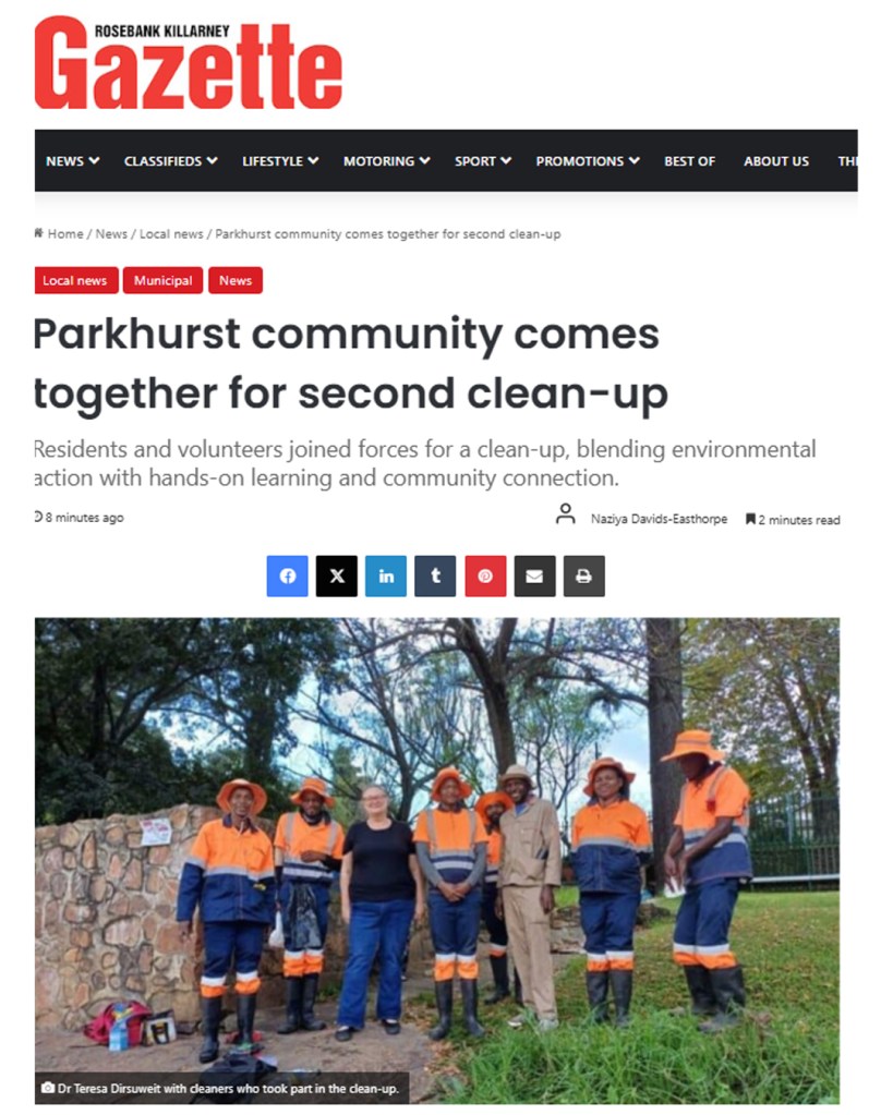 ”Parkhurst community rallies for a cleaner, greener future” (Naziya Davids-Easthorpe, 10 March 2025). Read more about this in the Rosebank Killarney GazetteLink: